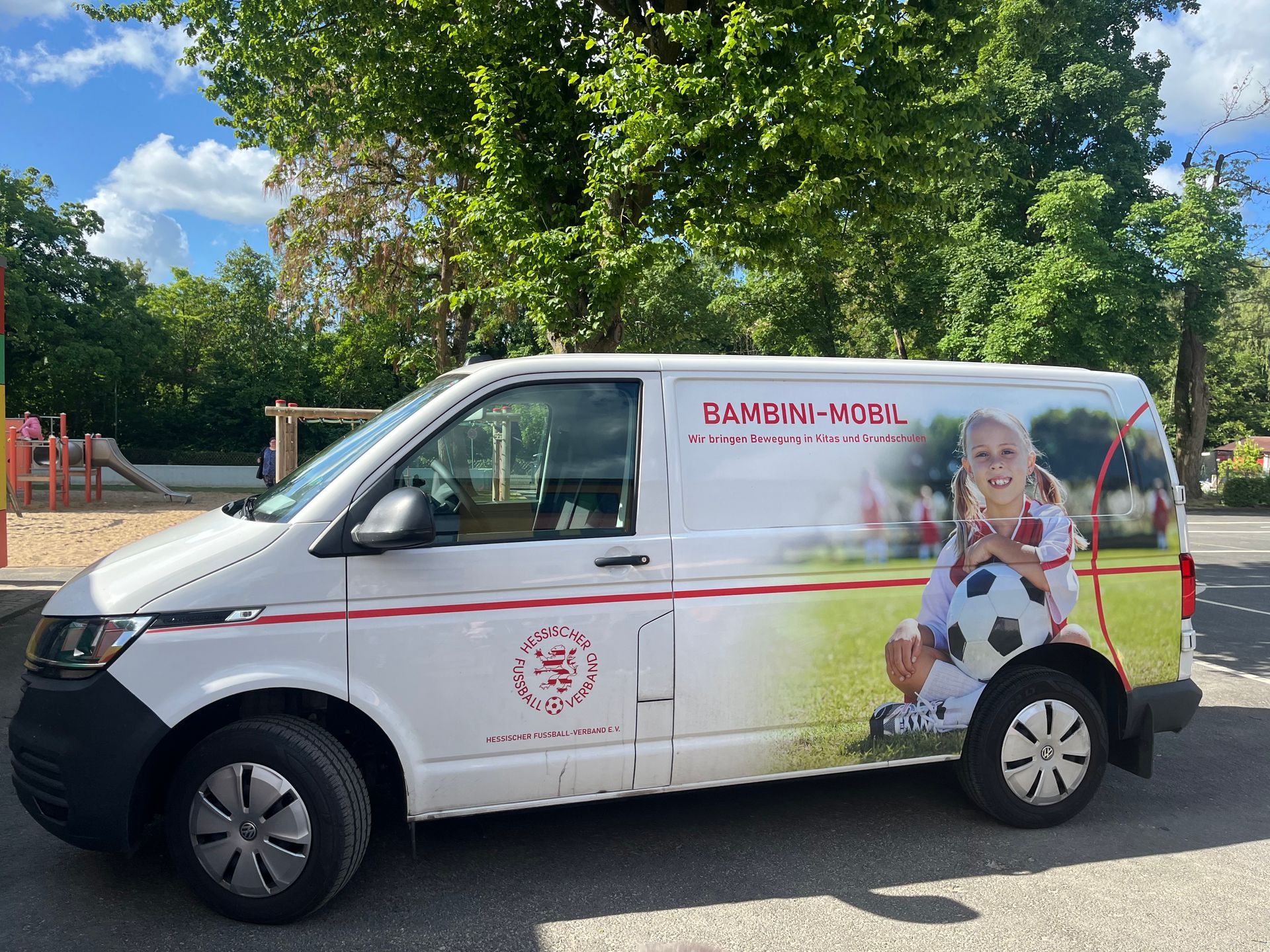 Am 20. und 23.05.2025 besuchte uns erneut das Bambini-Mobil an der Brüder-Grimm-Schule. Mit dem Bambini-Mobil besucht der Hessische Fußballverband (HfV) hessenweit Kindergärten und Grundschulen bis zur zweiten Klasse.