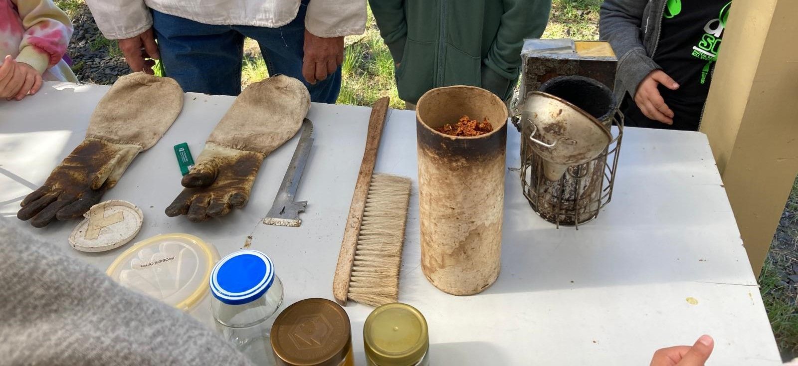 Herr Ruppel erklärte anschaulich die Aufgaben des Imkers und zeigte uns Schaukästen mit Bienen und Waben sowie verschiedene Arbeitsgeräte des Imkers. Ein weiteres Highlight war das Ausprobieren des Smokers, mit dem Bienen beruhigt werden können.